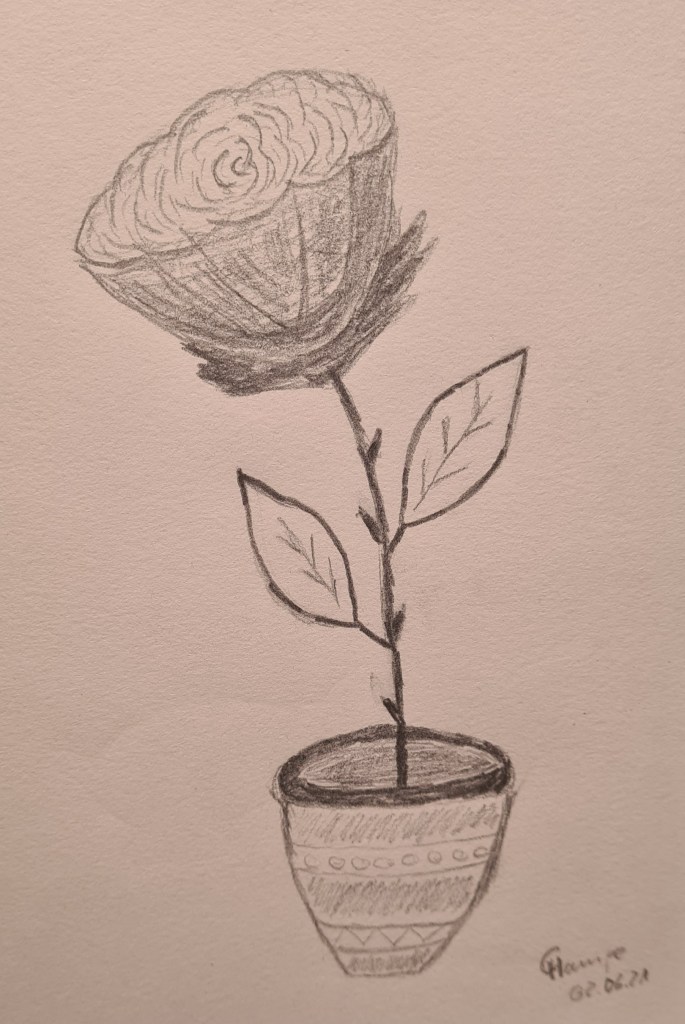Irgendwie sah das Modell nämlich doch etwas anders aus. Wie ihr seht, bin ich zum Zeichnen übergegangen. Keine Sorge, Aquarelle malen ist mein erklärtes Ziel. Aber bei den bisherigen Übungen ist mir klar geworden, dass es vielleicht doch keine so schlechte Idee ist, wenn man zeichnen kann. Es ist schwierig, wenn man eine Idee von einem Bild im Kopf hat, diese aber nur mangelhaft umsetzen kann, weil man die Technik nicht beherrscht. Ich habe nun schon einige Videos angeschaut und mir schlussendlich den Zeichenkurs von drawtut.com heruntergeladen. Damit arbeite ich nun Stück für Stück. Die wichtigste Aussage: Es geht nicht um Talent. Es geht um Motivation. Und davon habe ich zum Glück gerade reichlich. Die Ausrede: