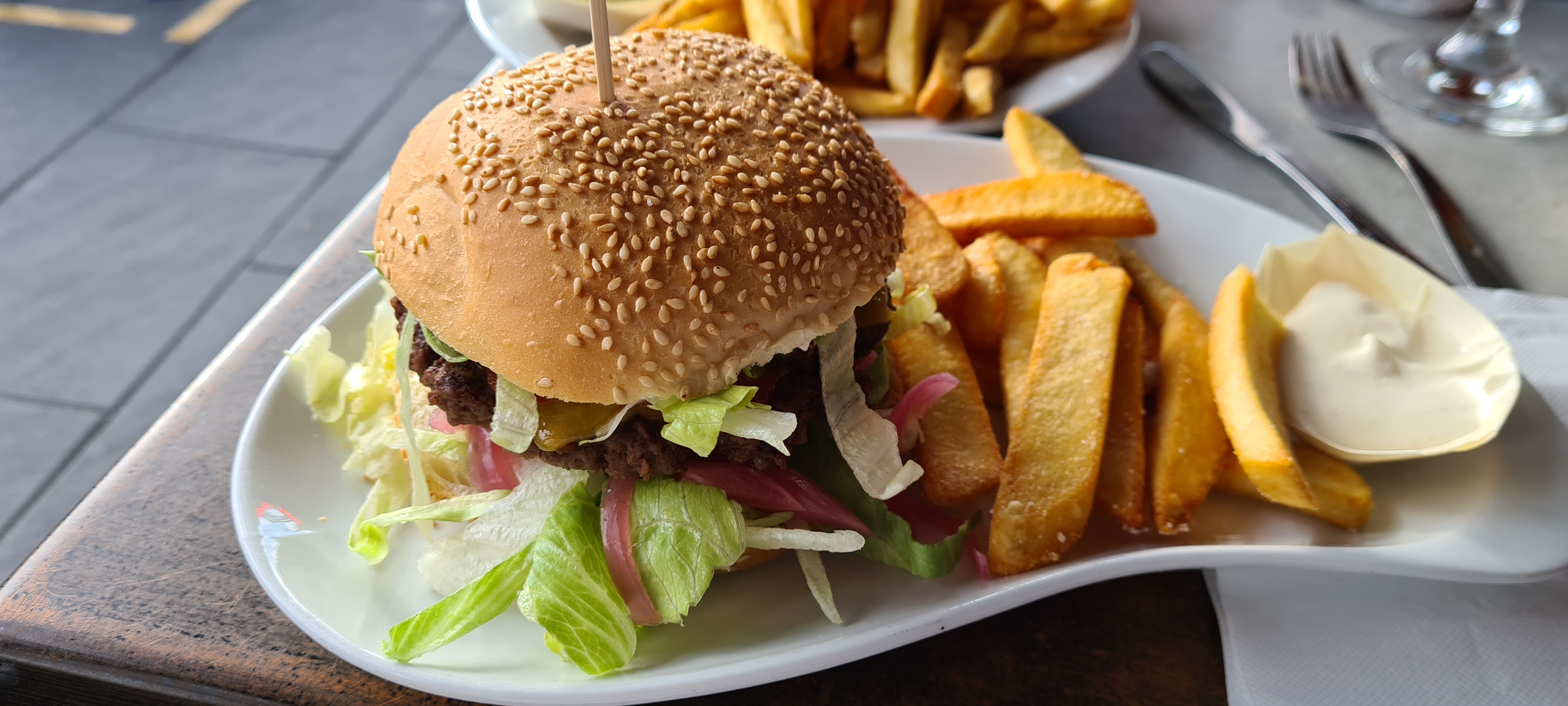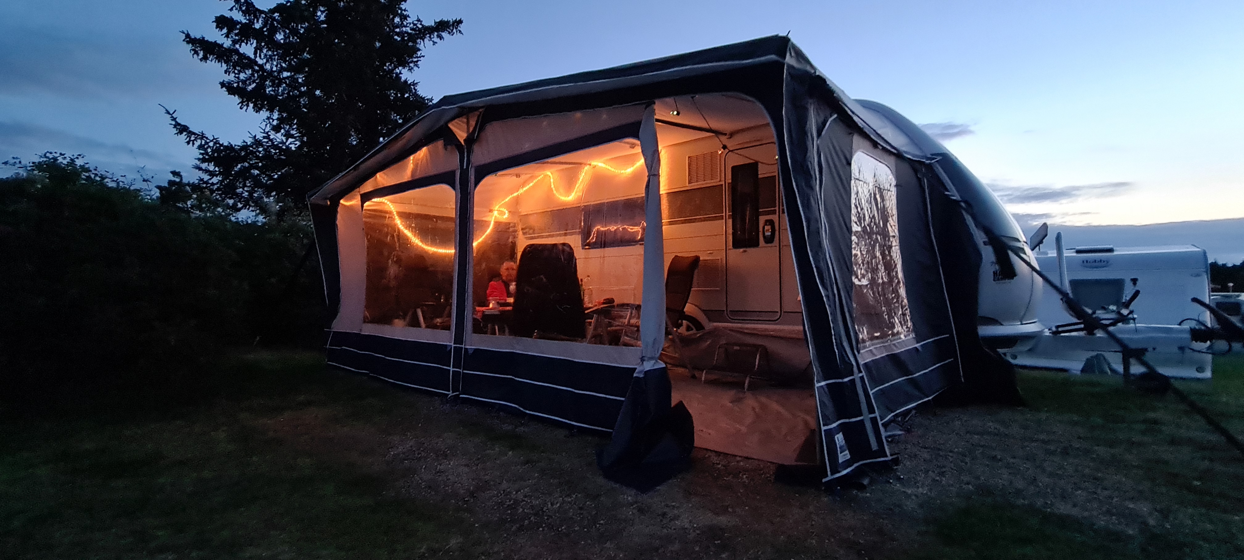 Irgendwie mussten wir die Zeit bis 12 Uhr rumkriegen und frühstückten erstmal. Und dann probierten wir unser Glück. Vielleicht könnten wir ja auch schon etwas früher auf den Platz. Hat geklappt. Tim von der Rezeption war super nett und wir hatten etwas mehr Zeit für den Aufbau. Brauchten wir auch. Vorzelt bei mäßigem Wind aufbauen ist schon eine Kunst. Haben wir aber auch geschafft…ohne Verletzung, ohne Ehekrach, ohne irgendwas kaputt zu machen. Danach gab es Burger und Bier und der Abend konnte gemütlich ausklingen.