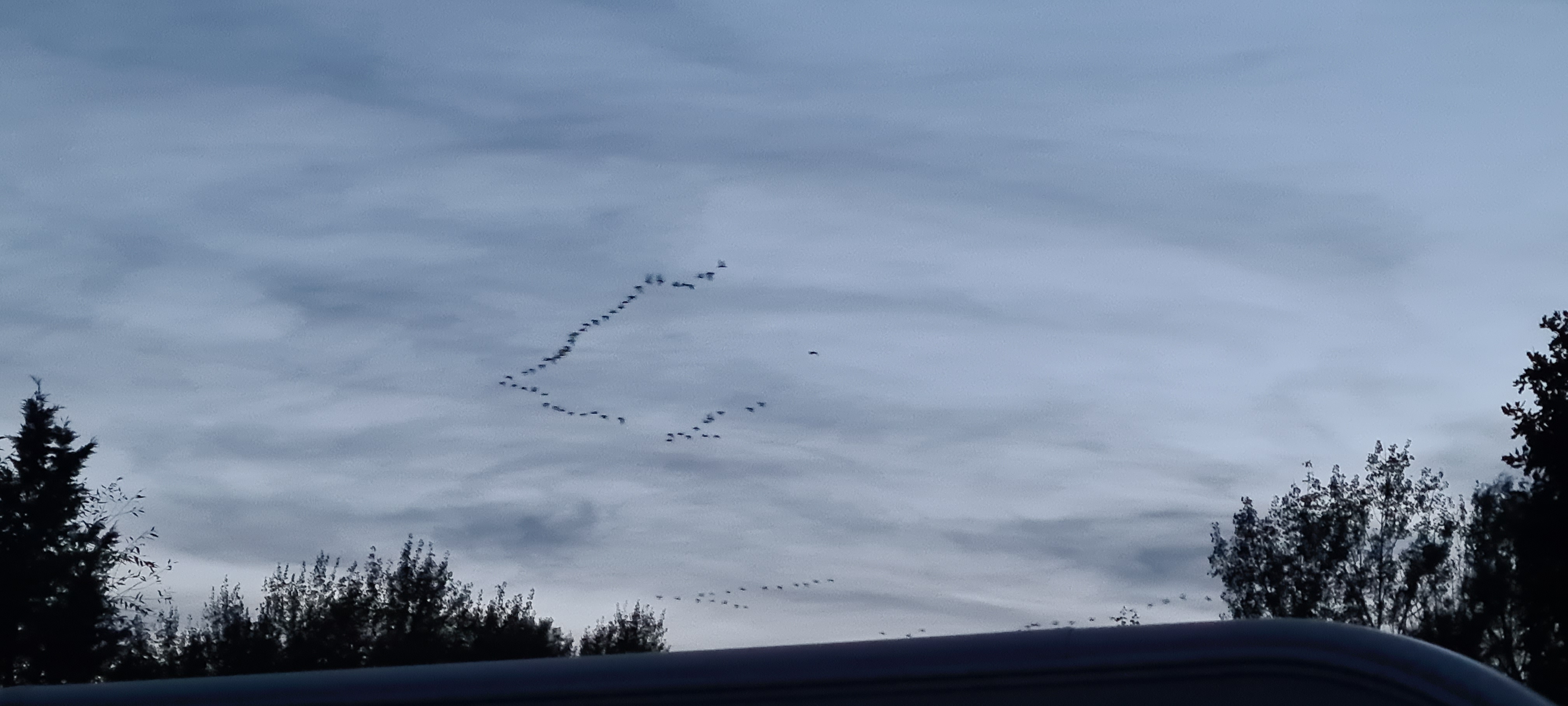 Wieder liegt ein entspanntes Wochenende hinter uns. Freitag war das Wetter so schön, dass ich noch am selben Abend rausfahren wollte. Und es hat sich wieder gelohnt. Ja, es wurde früher dunkel und damit auch recht kühl. Die Gänse machen sich mit lautem Geschnatter auf den Weg und ich freue mich schon jetzt darauf, dass sie im nächsten Frühling wieder kommen.
