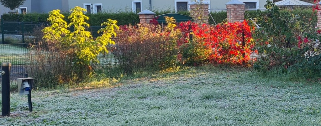 Viele Wochenenden wird es in diesem Jahr wohl nicht mehr geben. Um so mehr genieße ich die, die wir jetzt noch haben werden. Die Nächte waren schon empfindlich kalt und morgens waren es dann erst noch 4 und dann nur noch 2 Grad. Der Rasen war mit Reif überdeckt und die Kaffeetasse zum Glück heiß genug, um sich die Hände daran wärmen zu können. Und trotzdem habe ich jeden einzelnen Moment genossen und mich gefreut, dass ich in der Natur sein konnte. Sonnenaufgang, sternenklare Nacht, ein Fasan im Baum, ein Schmetterling auf unserem Tisch. Jeden einzelnen kleinen Moment habe ich aufgesogen. Und Sonne getankt. Davon hatten wir nämlich am vergangen Wochenende reichlich.