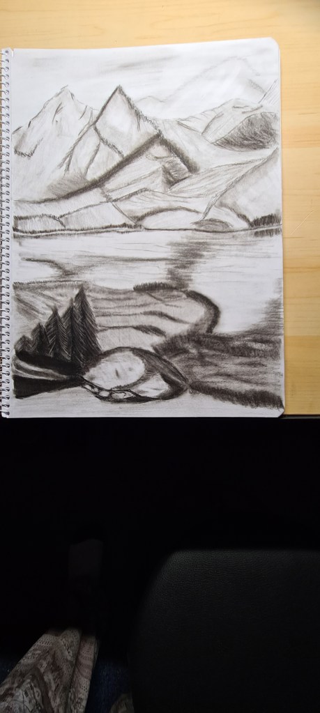 Heute habe mich an der Berglandachaft versucht. Gar nicht mal so schlecht. Aber ich verstehe langsam, warum es verschiedene Stifte gibt und wich wichtig die unterschiedlichen Arten des Schraffierens sind. Wie gut, dass ich verschiedene Sets habe, mit denen ich probieren kann. Wie jeder Künstler werde auch ich irgendwann meine bevorzugten Materialien finden