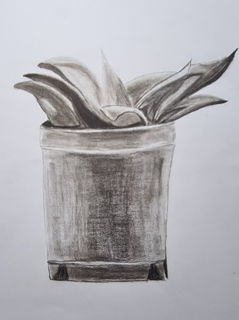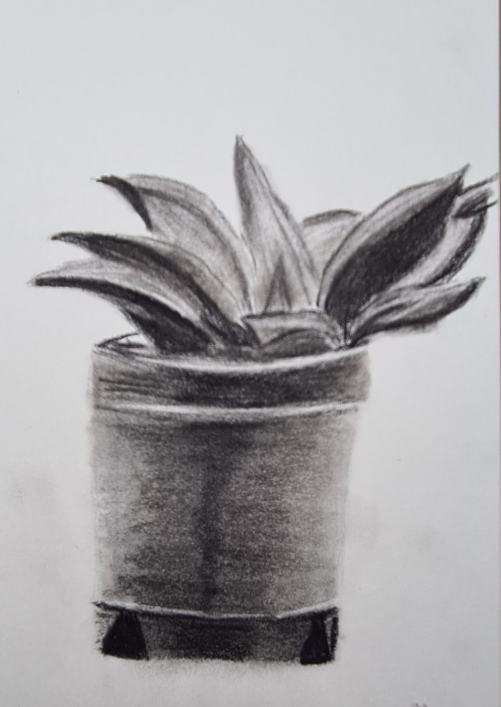 Der Topf war ja noch ganz gut…aber die Pflanze ist mir derbe verrutscht und ich war doch etwas enttäuscht. ABER….ich habe es dann eben nochmal auf weißem Zeichenpapier versucht und bin tatsächlich beeindruckt. Einfach, weil ich mich selber Lügen gestraft habe. Denn der zweite Versuch kann sich wirklich sehen lassen: